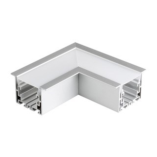 Прямой угол в сборе для соединения двух профилей S2-LINIA55-F под прямым углом 90° в одной плоскости в комплекте с матовым экраном и соединителями. Экран образует линию на плоскости. Применятся при изготовлении светильников сложной геометрии.