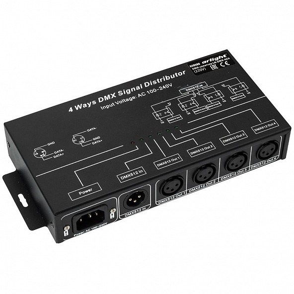 Контроллер-распределитель LN-DMX-4CH (230V) (Arlight, IP20 Металл, 1 год)