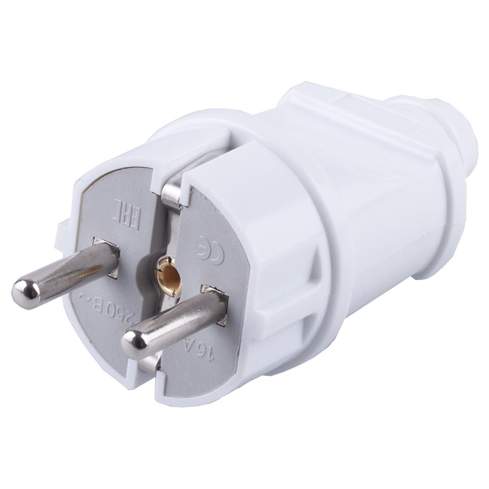 Вилка прямая с заземляющим контактом, пластик 250В, 16A, IP20, белая, PPG16-42-201