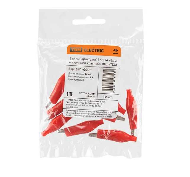 Зажим "крокодил" ЗКИ 5А 46мм в изоляции красный (10шт) TDM