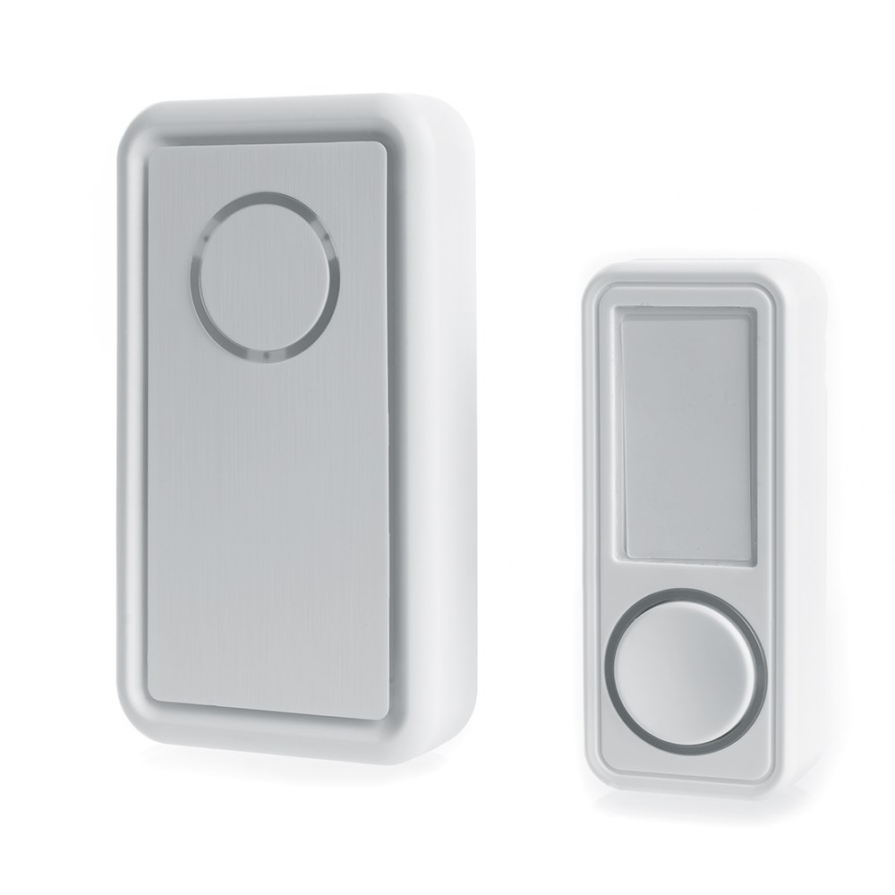 Звонок электрический дверной беспроводной FERON E-379, 18 мелодий, дальность действия 100м, цвет белый, шифрование сигнала - есть; БАЗА: 2*1,5V/AA, 123*70*23 мм, КНОПКА: IP44, 1 * CR2032 (в комплекте) , раб.t -20..+60°С , размер кнопки 38*22*92мм