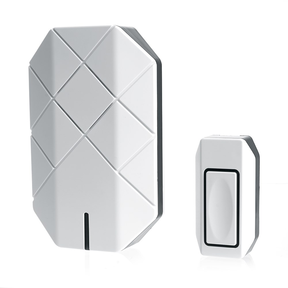 Звонок электрический дверной беспроводной FERON E-377, 30 мелодий, дальность действия 100м, цвет белый, регулировка громкости - есть, шифрование сигнала - есть; БАЗА: 3*1,5V/AA, 131*84*29 мм, КНОПКА: IP44, 1 * CR2032 (в комплекте) , раб.t -20..+60°С , размер кнопки 34*19*67мм