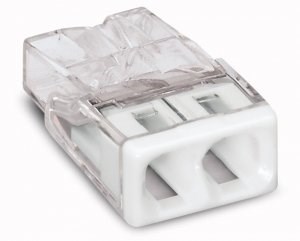 Клеммная колодка 2-х контактная с токопроводящей пастой Alu-Plus втычного типа для медных и алюминиевых одножильных проводов сечением 0,5 - 2,5 мм2. Рабочее напряжение 450 В, ток 24 А.
