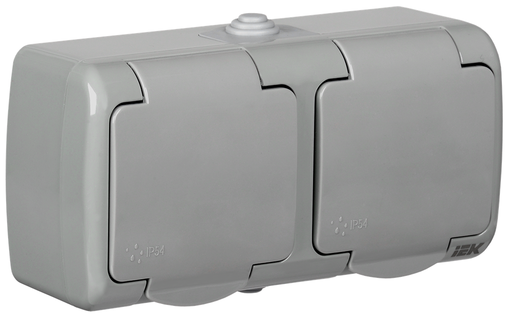 AQUATIC Розетка 2-ая с з/к откр. уст. 16А IP54 РСш22-2-А IEK
