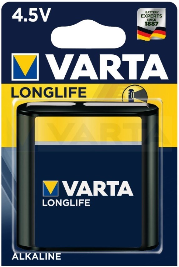 Батарейки VARTA Longlife являются одними из самых долгоиграющих щелочных элементов питания типа 3R12, благодаря очень большой ёмкости, данная серия наилучшим образом подходит для приборов и устройств с невысоким и постоянным энергопотреблением, требующих длительного использования. Также хотелось отметить их срок хранения, у серии Longlife он составляет почти 10 лет, при том, что за этот период, если соблюдать условия хранения, процент саморазряда батарейки будет около 1-2%.
