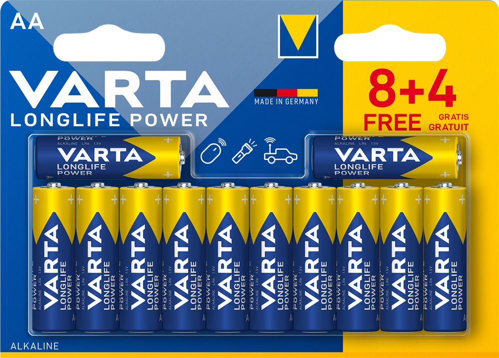 VARTA LONGLIFE POWER упакована в удобный, прочный и вместительный блистер, состоящий из 12-ти элементов питания типа АА.
