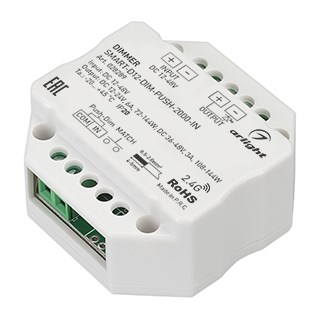 Диммер SMART-D12-DIM-PUSH-2000-IN (12-48V, 1x6A, 2.4G) (Arlight, IP20 Пластик, 5 лет)