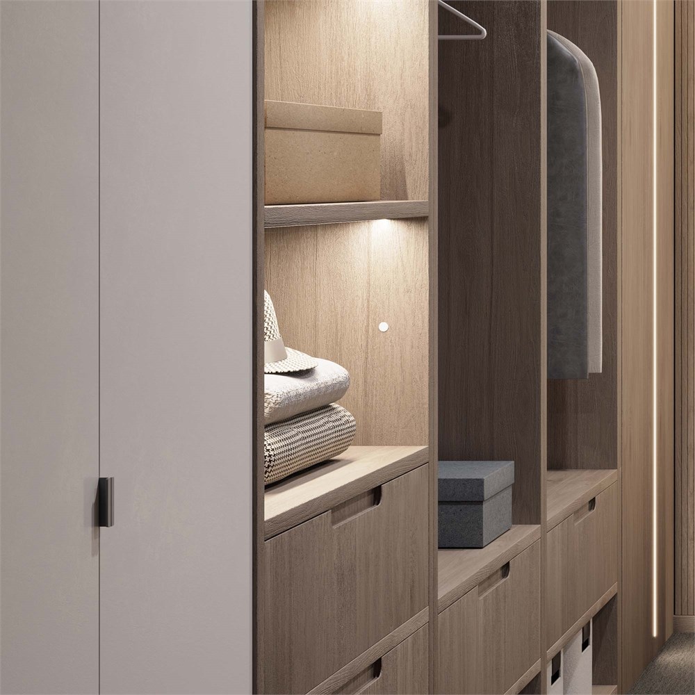 Диммер SR-NAVE-RECESSED-R18-WH (12-24V, 48-96W, M-FC) предназначен для управления яркостью одноцветных светодиодных лент или других источников света с напряжением питания 12/24 В и мощностью до 48/96 Вт. Благодаря компактным размерам корпуса Ø 22 х 16,5 мм и круглой форме, диммер легко встраивается в поверхность мебели с подсветкой (для ЛДСП/МДФ толщиной 18 мм). Удобство и простота в управлении осуществляется за счет встроенного сенсорного датчика. При коротком нажатии происходит плавное включение и выключение света, а долгое прикосновение позволяет диммировать. Имеет функцию памяти последней настройки. Окрашенный корпус для лучшего сочетания с мебелью. Широко применяется при организации подсветки в шкафах или гардеробных.
