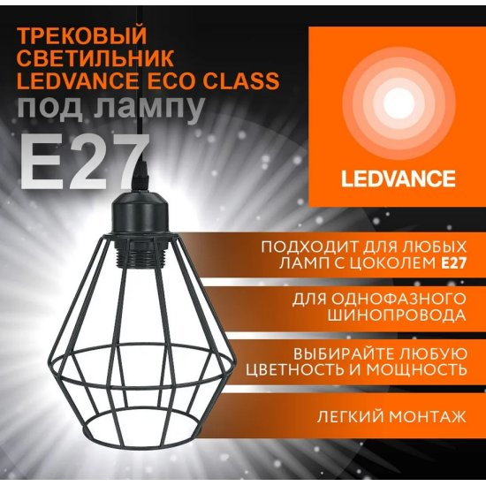Однофазный трековый подвесной светильник ECO PENDTRACKSP 1PH E27 BKDD LEDVANCE
