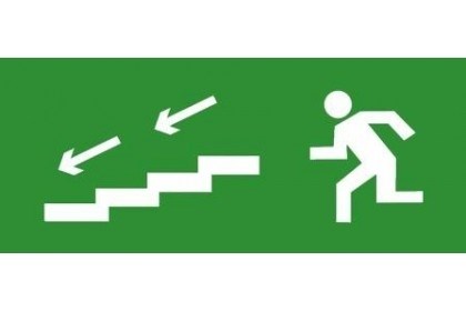 Эвакуационный знак ЭП13 По лестнице вниз налево 140x280 мм