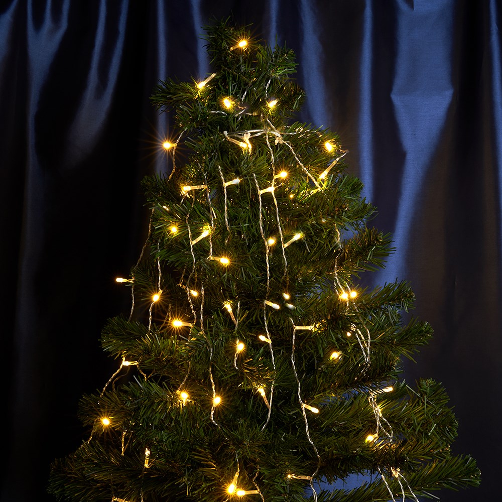 Гирлянда на елку FERON CL90, 140LED, 2700К (теплый белый), настраивается контроллером, 2м+1,5м зеленый шнур, расстояние между лампами 10см, IP20, 8,4W, от сети 230V, последовательное подключение - НЕТ
