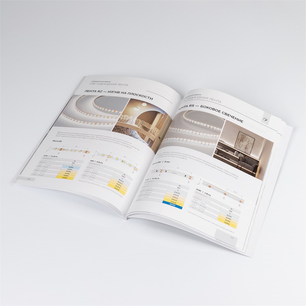 Каталог "Освещение для мебели" включает в себя описание ассортимента профилей, блоков, светодиодных лент, неона, светильников и управления светом широко применяемого в мебельной подсветке.