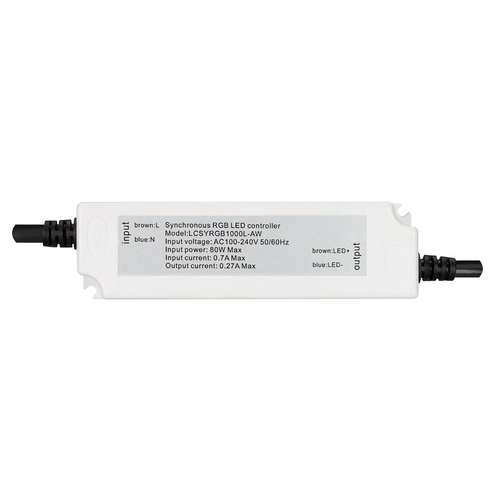 RGB контроллер с пультом дистанционного управления на 18 кнопок предназначен для управления светодиодными гирляндами RGB-SYNC и синхронизации их работы. Он обеспечивает динамическую смену режимов свечения гирлянды, поддерживает управление до 1000 светодиодов и имеет степень защиты от воздействия окружающей среды IP65. Контроллер работает при напряжении питания DC 230V, мощность нагрузки составляет 80W. Оболочка из черного ПВХ придает ему элегантный внешний вид. Габариты контроллера составляют 115х32х26 мм. Длина провода составляет 1,5 метра, что позволяет удобно располагать гирлянду.