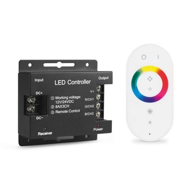Контроллер для RGB 288W 24А с сенсорным пультом управления цветом (белый)