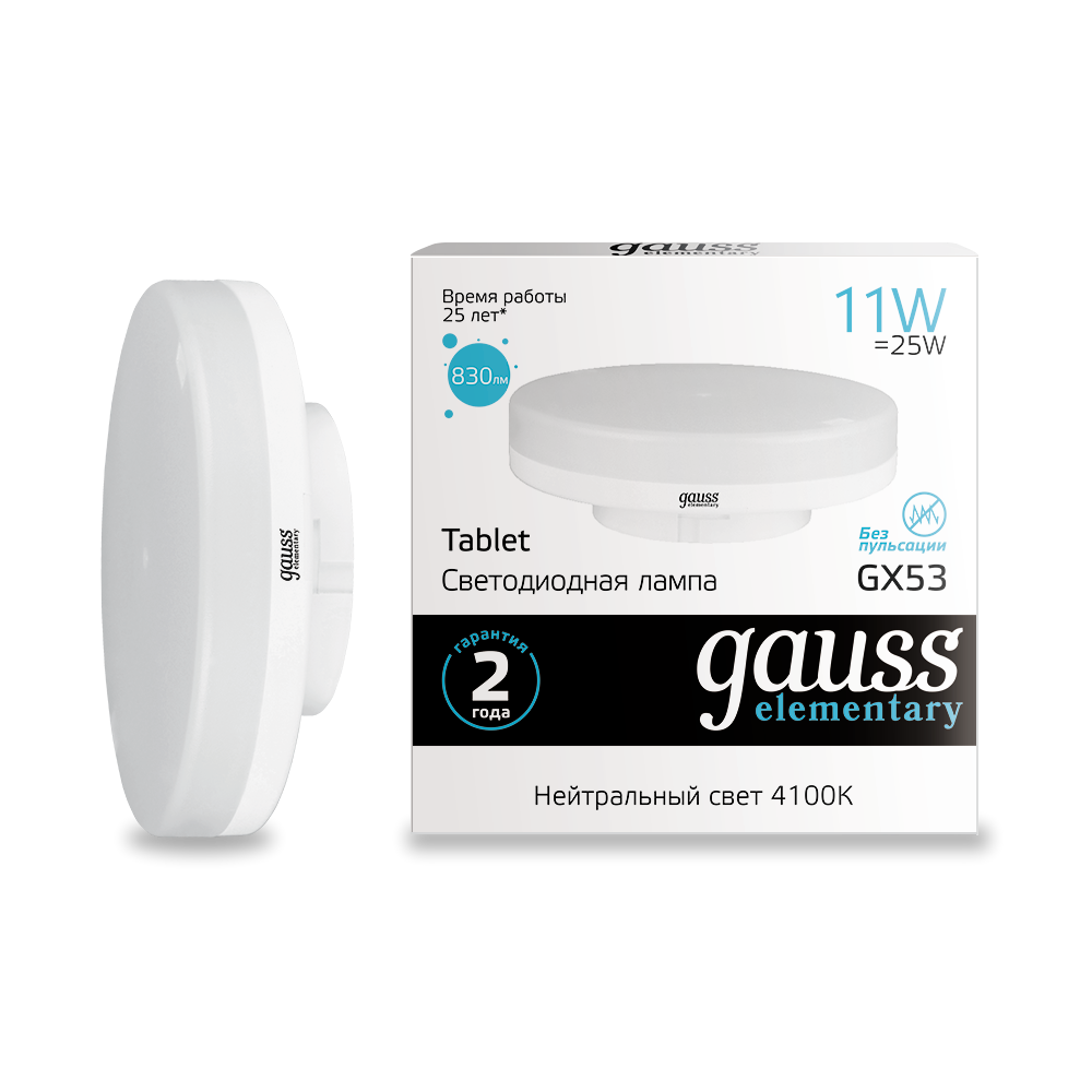 Лампа Gauss Elementary GX53 11W 830lm 4100K LED 1/10/100