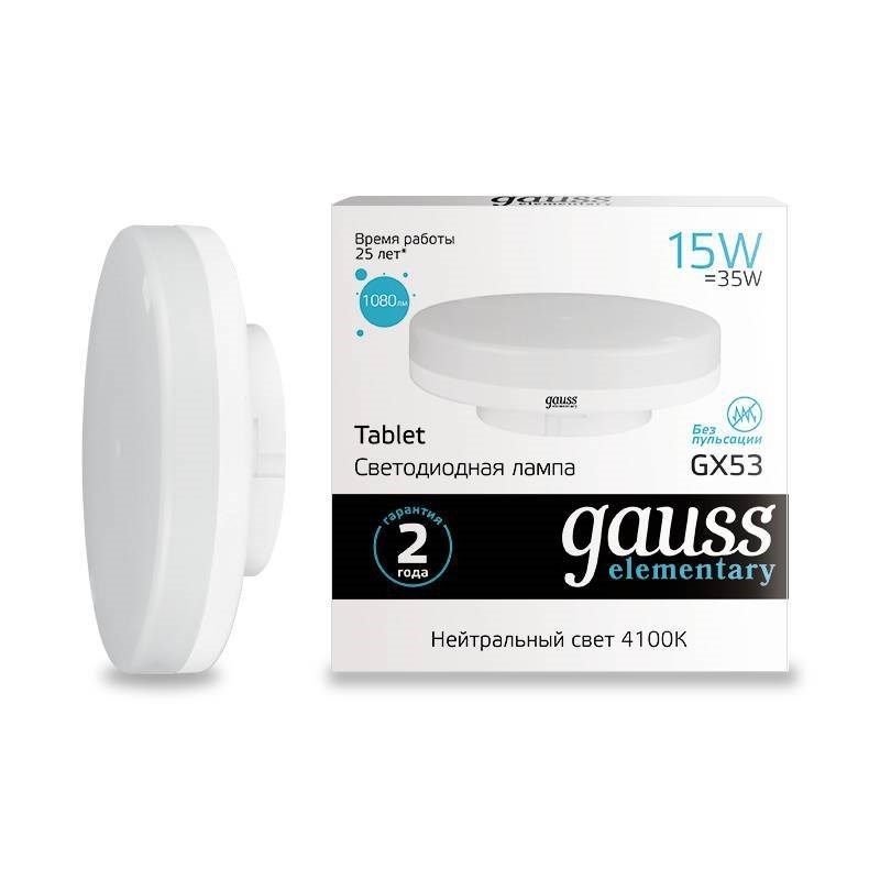 Лампа Gauss Elementary GX53 15W 1140lm 6500K LED 1/10/100