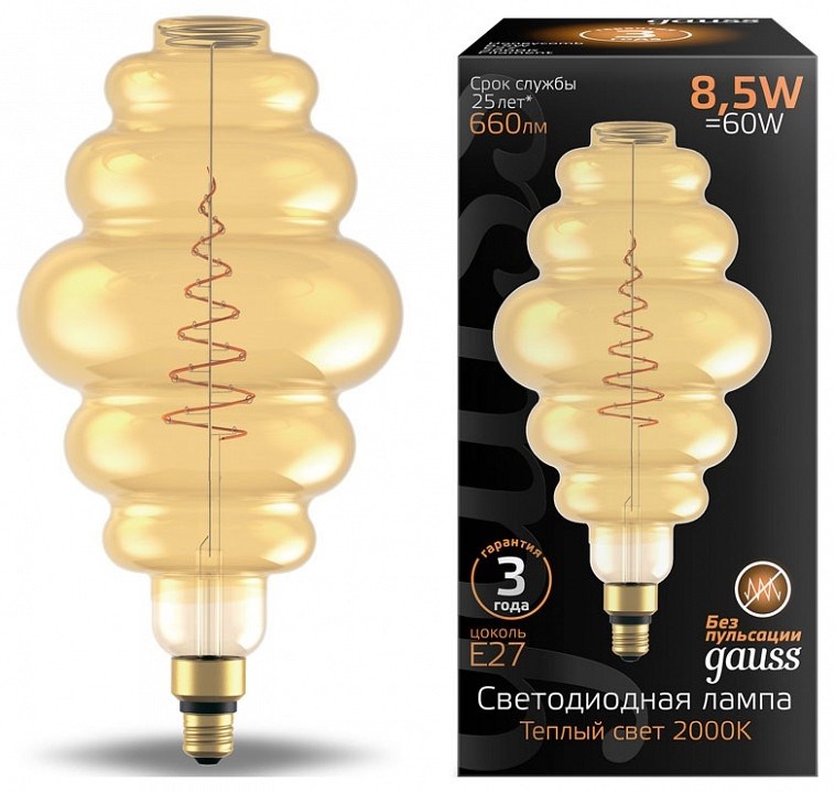 Лампа Gauss Filament Honeycomb 8.5W 660lm 2000К Е27 golden LED 1/2