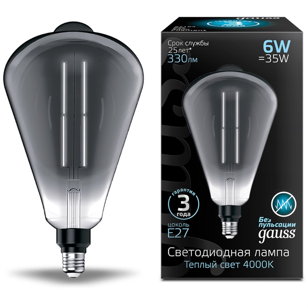 Лампа Gauss Filament ST164 6W 330lm 4000К Е27 gray straight LED 1/6