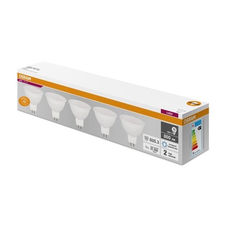 Лампочка светодиодная OSRAM LED Value PAR16, 480 лм, 6 Вт, 4000К (нейтральный белый свет), Цоколь GU10, 5 шт