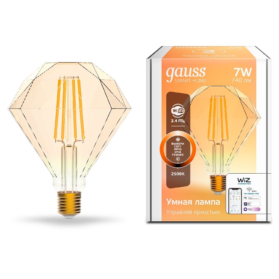 Лампа Gauss Smart Home Filament Diamond 7W 720lm 2500К E27 диммируемая LED 1/40