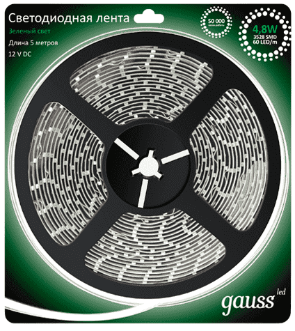 Лента LED 2835/60-SMD 4.8W 12V DC зеленый (блистер 5м)