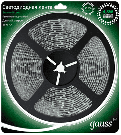 Лента LED 2835/60-SMD 4.8W 12V DC зеленый IP66 (блистер 5м)