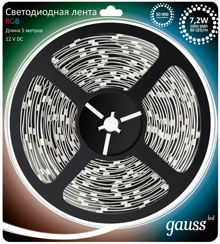 Лента LED 5050-SMD 7.2W 12V DC RGB (блистер 5м)