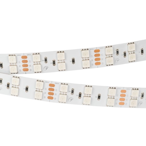 Гибкая мультицветная лента LUX, светодиоды smd 5060,120шт/м (600шт на 5м), белая плата 15мм, скотч 3М. Цвет RGB. Питание 24V, макс.мощность 28.8 Вт/м (144 Вт на 5м), угол 120°. Размеры 5000x15x2мм. Мин.отрезок 50мм-6 светодиодов. Цена за 1м.