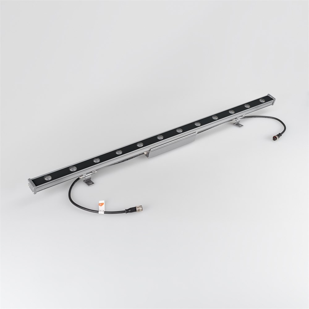Ультратонкий линейный прожектор AR-LINE-1000-12W Warm3000 (GR, 15x60 deg, 230V) мощностью 12 Вт с теплой температурой свечения 3000К и световым потоком 950 лм широко используется для декоративной подсветки зданий, а также архитектурных и скульптурных объектов: памятников, мостов, арок и т. д. Специальная оптика, установленная в прожекторе, формирует распределение светового потока с узконаправленным углом излучения 15x60°, что позволяет создать яркую и красивую иллюминацию фасадов зданий, а также сделать акценты на архитектурных формах. Применение в прожекторе SMD-светодиодов с высокой световой эффективностью 79 лм/Вт экономит значительную долю электроэнергии. Алюминиевый корпус серого цвета, с размерами 1000х40х30 мм и степенью пылевлагозащиты на уровне IP65, дает возможность эксплуатировать прожектор как в помещениях, так и на открытом воздухе, избегая места с большим скоплением воды. Встроенный драйвер позволяет быстро и безопасно подключить прожектор напрямую к сети 230 В. Герметичные разъемы, входящие в к