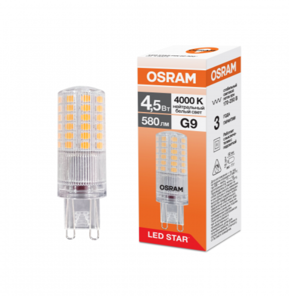Лампа светодиодная капсула LSPIN 4,5W/840 170-250V CL G9 OSRAM