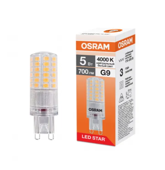 Лампа светодиодная капсула LSPIN 5W/840 170-250V CL G9 OSRAM