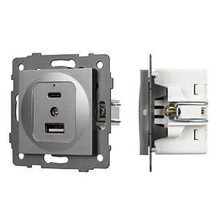 Механизм USB розетки SCT-MUAC-PL-GR-V (5V, 3A, QC4) (Arlight, -)