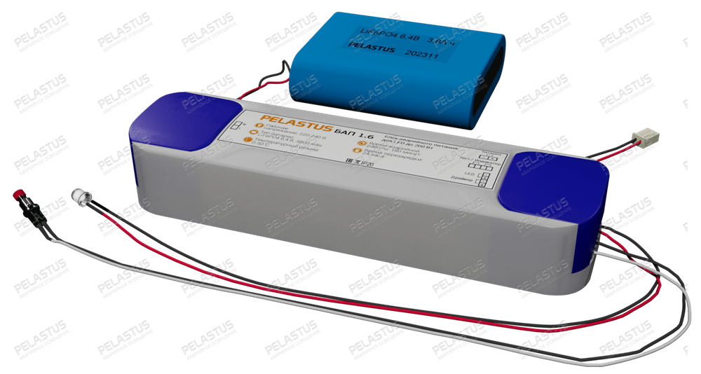 Pelastus Блок аварийного питания БАП 1.6 для светодиодных светильников до 200 Вт. Батарея:Li-FePO4 6.4В 3800мА/ч. 6вт
