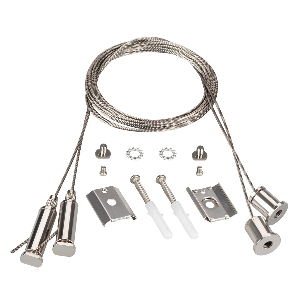 Подвесное крепление для профиля LINE-5075-HONEYCOMB. Два регулируемых троса длиной 2 метра в комплекте с держателями позволяют легко зафиксировать конструкцию на необходимом расстоянии от потолка.