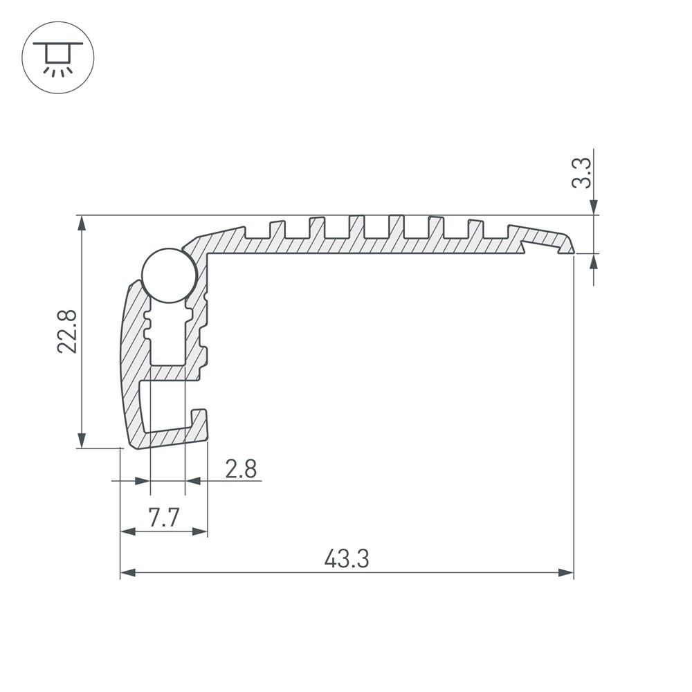 Алюминиевый анодированный компактный профиль для подсветки ступеней, с антискользящей вставкой. Габаритные размеры (L×W×H): 2000x43,2x22,7 мм. Ширина площадки для ленты 5 мм. Заглушки и другие аксессуары приобретаются отдельно. Цена за 1 метр.