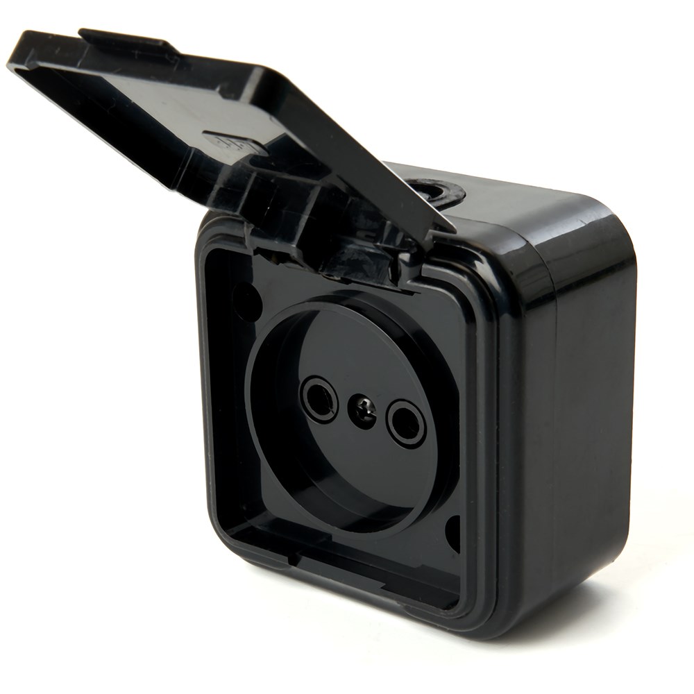 Розетка STEKKER PST16-20-44 (IP44 при закрытой крышке, IP20 при открытой крышке) на 1 гнездо, с крышкой, без заземления. Материал: ABS пластик, цвет черный, размер 70*70*50,9мм. Номинальное напряжение 250, номинальный ток 16А, диапазон рабочих температур 0..+35°C, IP44