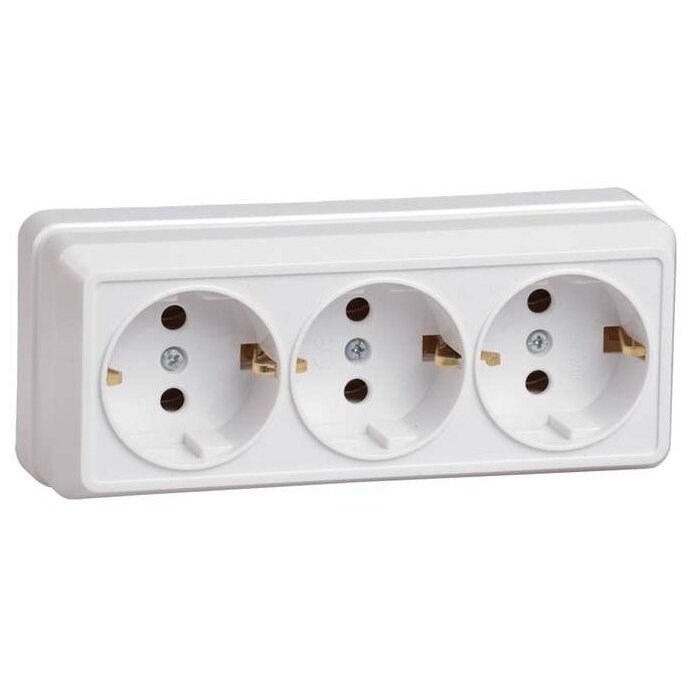 Розетка 3 О/П IP20 с з/к РС23-3-ОБ 16А трехместная серия ОКТАВА (белый) (уп. 20 шт.)