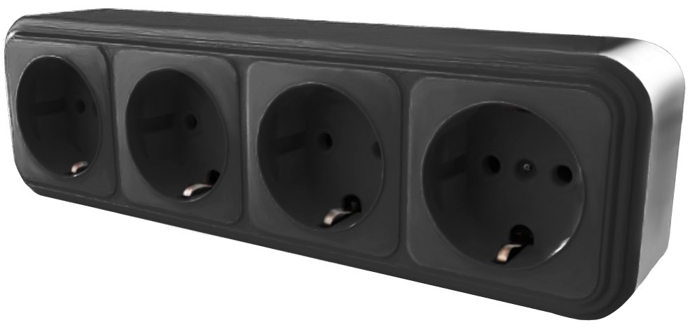Розетка 4-местная с заземляющим контактом, 250В, 16А, IP20, PST16-61-20 (RA 16-466-Ч), черный