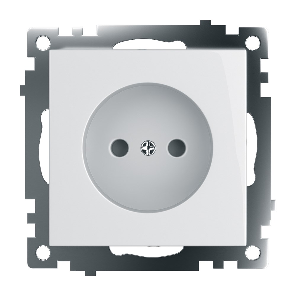 Розетка STEKKER GLS10-7109-01 на 1 гнездо, без заземления. Материал: ABS пластик, латунь, цвет белый, размер 84*84*30мм. Номинальное напряжение 250, номинальный ток 10А, диапазон рабочих температур 0..+35°C, IP20