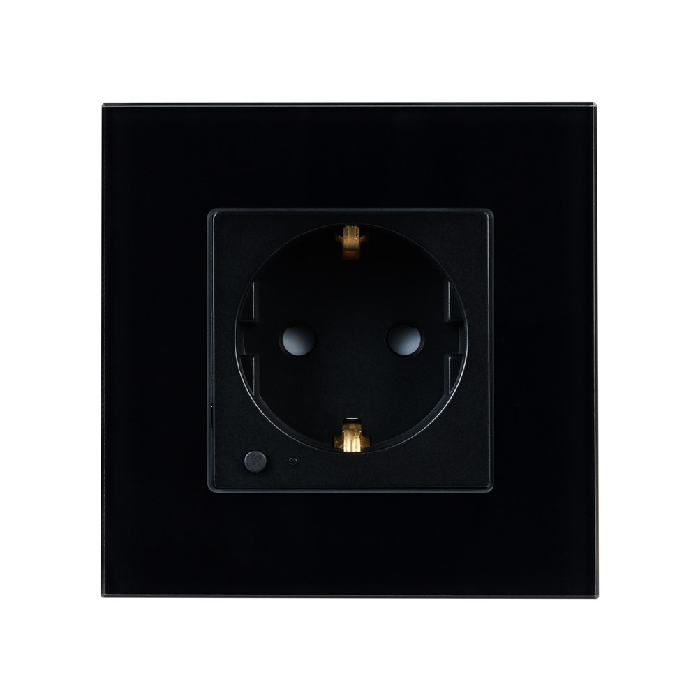Умная розетка из серии OMALI с функцией беспроводного управления по протоколу Zigbee. Видимая часть механизма выполнена из высококачественного пластика черного цвета, с фронтальной рамкой из закалённого стекла. Контактная часть присоединяется при помощи винтовых зажимов, а усиленная алюминиевая рамка, надежно фиксирует механизм в установочном подрозетнике.