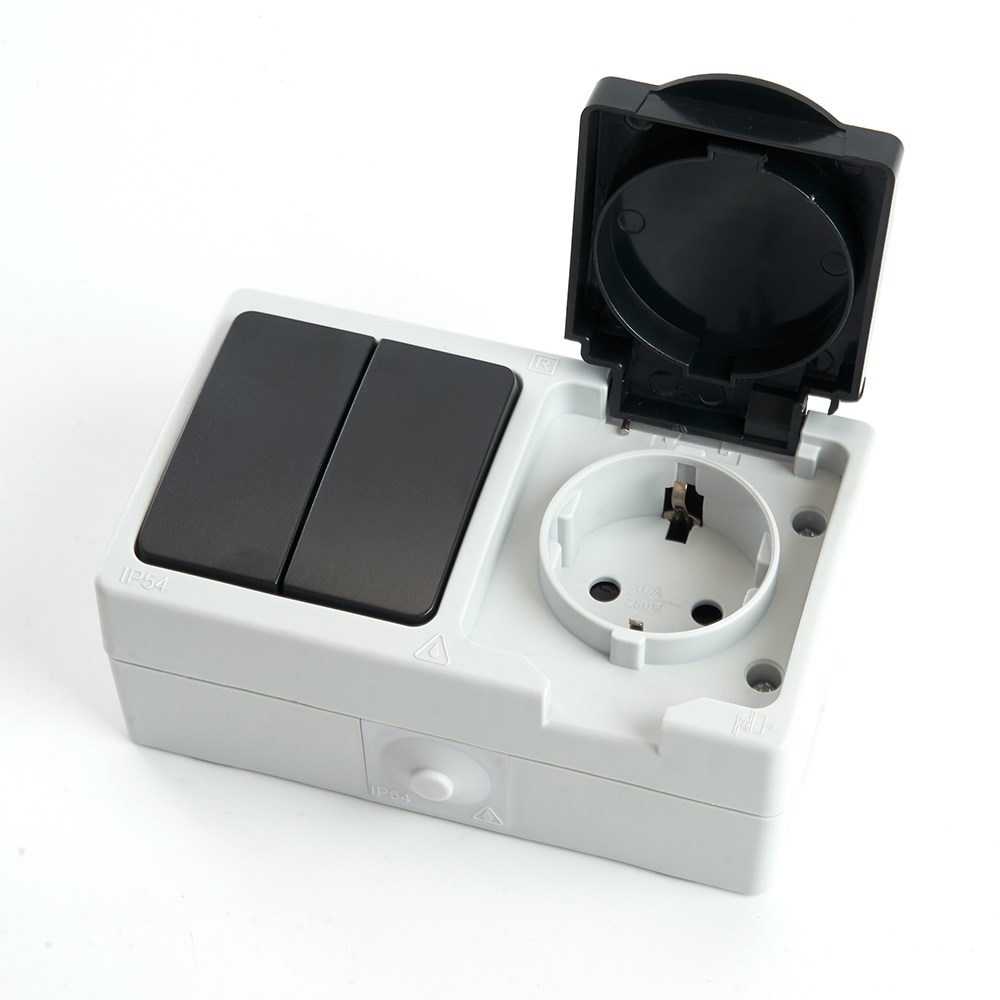 Розетка открытой установки STEKKER PST16-11-54/10-121-54 (блок с выключателем двухклав., однополюсны