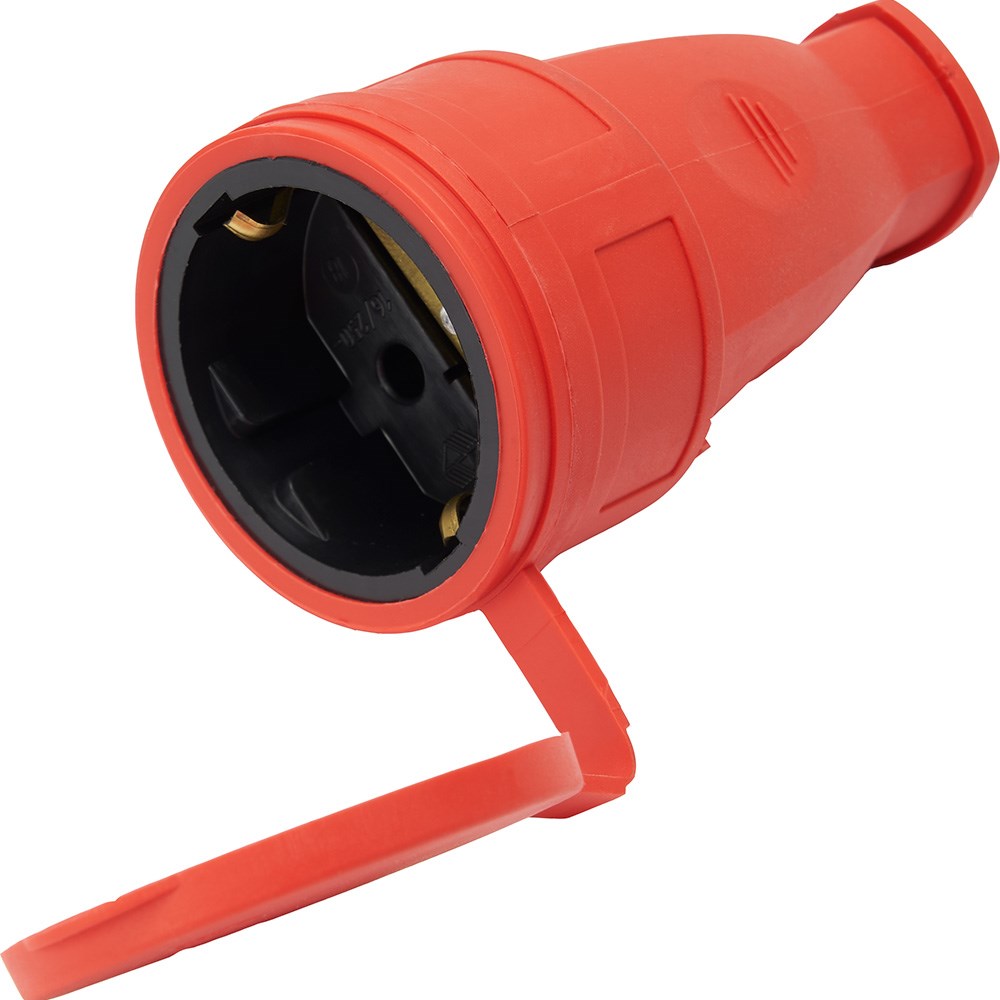 Розетка STEKKER RST16-21-44 на 1 гнездо, с крышкой, с заземлением. Материал: каучук, цвет красный, размер 95*78*55мм. Номинальное напряжение 230, номинальный ток 16А, диапазон рабочих температур +1..+35°C, IP44