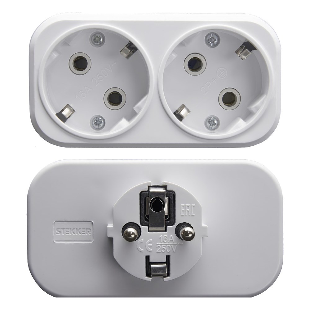 Сетевой разветвитель STEKKER ADP16-22-20 (ADP16-22-20) с заземлением, количество присоединяемых устройств 2, номинальное напряжение 250В, номинальный ток 16А, материал ABS пластик, латунь, нержавеющая сталь, цвет белый, IP20