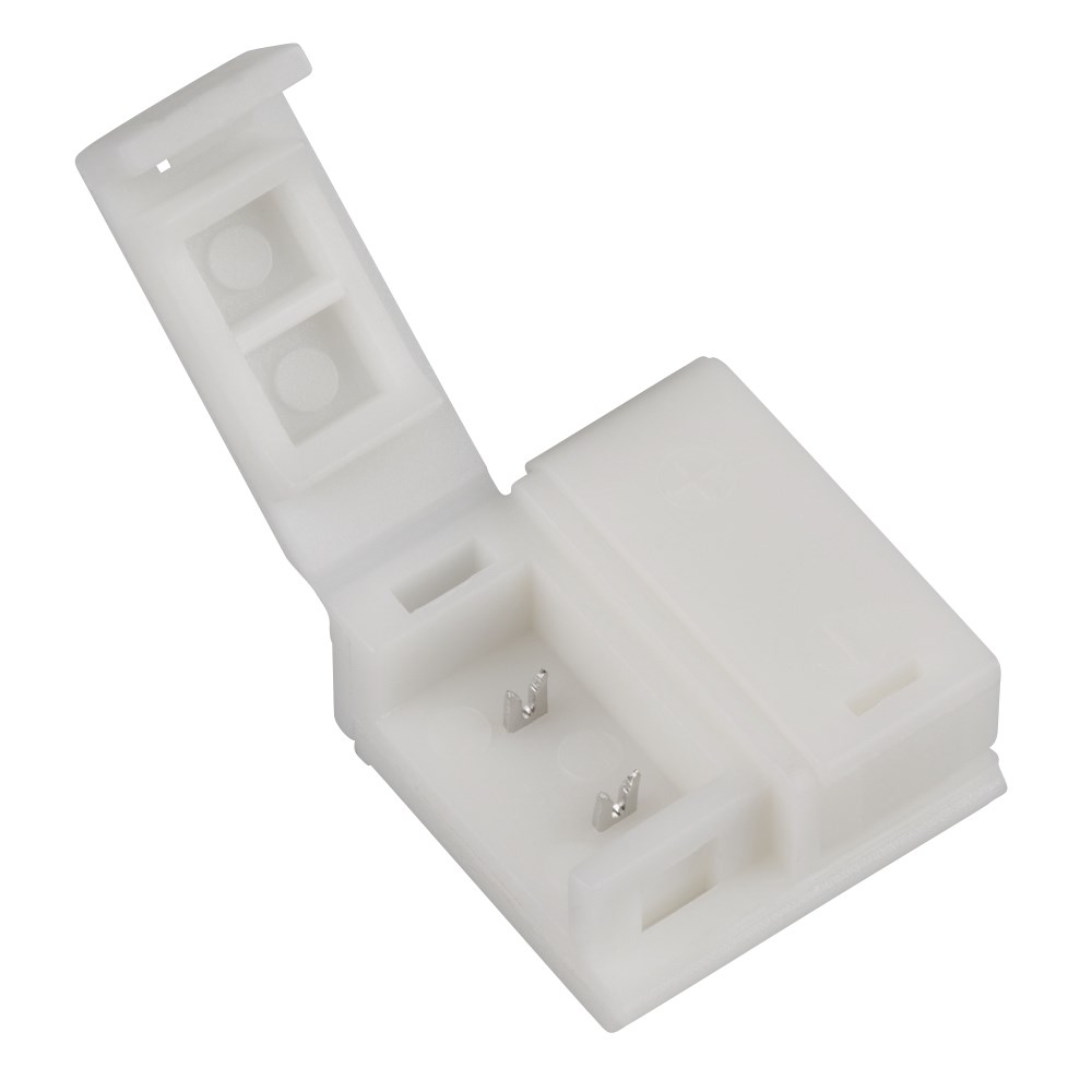 Одиночный пластиковый коннектор без провода для соединения двух отрезков герметичных одноцветных светодиодных лент шириной 10 мм. Максимальный допустимый ток 3 А, напряжение до 50 В.
