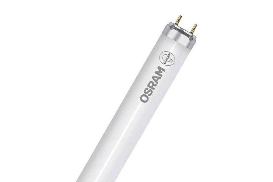 Лампа светодиодная OSRAM SubstiTUBE T8, 800 лм, 9Вт (замена 18Вт), 4000K (нейтральный белый свет). Цоколь G13, колба T8, угол пучка 180°. Данные лампы устанавливаются в стандартные светильники с патроном G13 под одну, две или четыре лампы. Для этих светодиодных трубок нет необходимости в заглушке дросселя, т. к. питание 220В подается напрямую на патроны цоколя с обеих сторон.