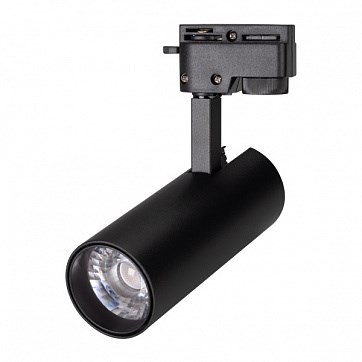 Светильник подвесной для треков/шин 2 провода. Мощность 10 Вт, св. поток 860-1060 лм, 90 лм/Вт, теплый 3000 K, CRI>90, угол 24°, напряжение питания 230 В. Черный круглый корпус из алюминия, материал линзы PMMA , степень защиты IP20. Размер: диаметр 55 мм, высота 145 мм. Монтаж на трек 1-фазный. Драйвер встроенный 27-38 В, 260 мА., пульсация <1%.