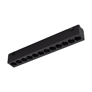 Линейный магнитный светильник MAG-VIBE-LASER-L197-12W Warm3000 (BK, 24 deg, 48V) мощностью 12 Вт с теплым белым цветом свечения (3000 К), световой эффективностью 74 лм/Вт. Высокий индекс цветопередачи (CRI>90) и световой поток 890 лм - отличное решение для качественного освещения. Удовлетворяет требованиям проектов, так как обеспечивает наилучшую передачу цветов. Быстрый и надежный монтаж на узкий трек MAG-VIBE, размерами 25 х 7мм и напряжением питания 48В, выполняется с помощью магнитов и механических фиксаторов (драйвер поставляется отдельно). Узкий угол излучения 24° подходит для направленного освещения, а создаваемый эффект свечения DARKLIGHT («свет из ниоткуда») очень востребован при создании интерьеров со скрытой установкой источников света. Длина светового модуля 197 мм. Минимальный коэффициент пульсации (менее 1%) гарантирует зрительный комфорт без пульсаций. Корпус светильника окрашен в черный цвет, выполнен с защитой от пыли IP20, и позволяет применять модель внутри помещений, где нет контакта с вод