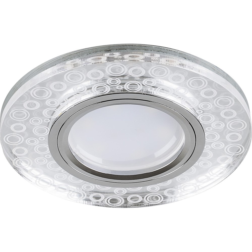 Светильник потолочный встраиваемый (ИВО) FERON CD961, под лампу с LED подсветкой 15LED*2835 SMD 4000K, MR16 G5.3, прозрачный хром, круг, 95*95*25 мм, монтажн.отв. 60 монтажный диаметр 60мм, корпус полимер, неповоротный