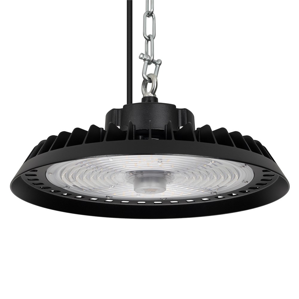Светильник SP-ARIVA-MOTION мощностью 200 Вт, дневного цвета свечения 5000K, световым потоком 30000 лм и углом рассеивания 90 градусов предназначен для освещения складских и промышленных помещений. Черный цвет корпуса, габариты Ф350xH140 мм, степень пылевлагозащиты IP65., индекс цветопередачи CRI 80, степень ударопрочности IK08. Рым-болт в комплекте. Датчик настраивается с помощью пульта 052018 (один на все датчики). Доступно управление по протоколу 0-10В.