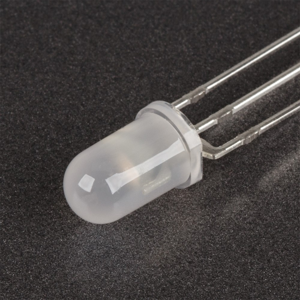 Выводные светодиоды различного диаметра (от 3 до 10 мм) и цвета свечения (в том числе двухцветные и RGB) изготовлены с применением различных материалов первичной оптики. Кристалл помещен в корпус со специальной линзой (прозрачной или окрашенной), которая формирует нужный световой пучок (узкий от 10 до 60° или широкий 120-140°). Данный тип светодиодов применяется в модулях индикации электронных приборов, устройств типа «бегущая строка» и «табло», в специальных устройствах (дорожные знаки и светофоры), световых украшениях или игрушках с подсветкой.
